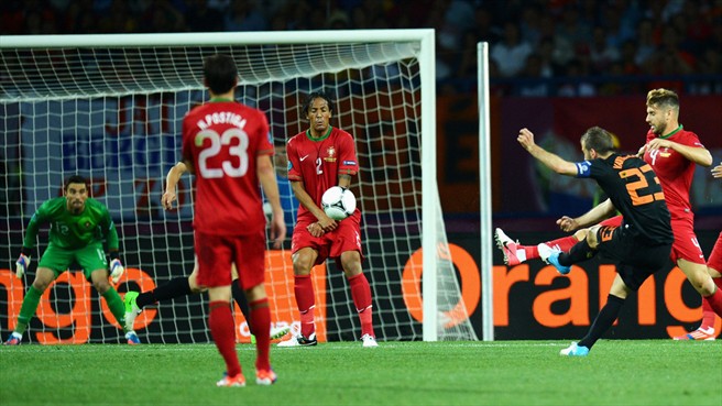 Rafael van der Vaart scored a wonderful opening goal against Portugal but the Dutch still went on to lose 2-1. ©Getty Images