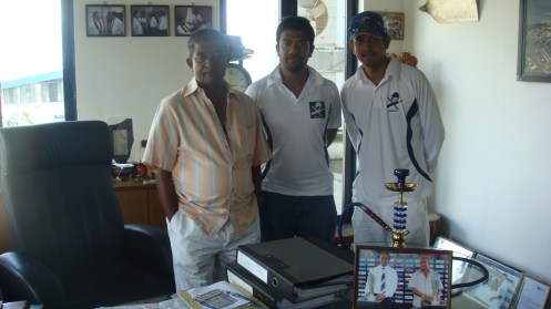 I am not a great fan of T20 cricket: Warnaweera. He is seen with CouchExperts Chandra and Goutham in this picture.