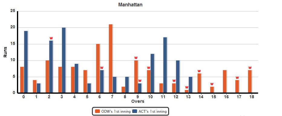 ODW won another toss. They elected to bat again. Melvin got off to another tremendous start. ACT lost another toss. Their bowlers struggled again. Another disastrous powerplay. It was last Sunday repeating for both teams. Only that this was being played under massive black clouds and swirling winds under severe threat of being affected by rain. Light was an issue as much as the gloomy clouds.