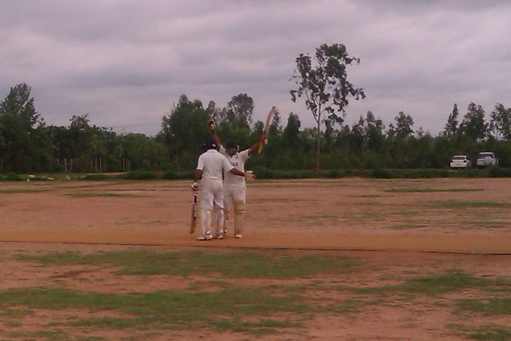 Vinay and Sharath opened the batting and looked to be positive from the onset. Vinay was the aggressive of the two and also the chancier of the two. Often looking to go over the top, he quickly spread the field around with some clean hitting. He maneuvered the field brilliantly often by stepping out and hitting over the top and then waiting for the short ball and then putting them away. He pushed the mid-on wide with his flicks and then would charge down the wicket to hit over straight-mid on. He seemed to be two steps ahead of the bowler and fielding captain all the while. He was also lucky as he did give more than a chance to the long-on fielder only for him to badly misjudge the first one and then drop the next one.