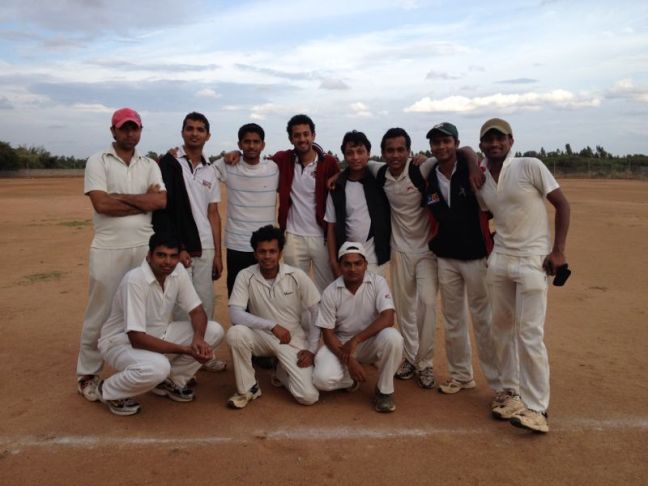 Standing (L to R): Gurjuinder, Dinesh P, Vinay MH, Goutham Chakravarthi (C), Joydeep Bhattacharjee,Syed Shoukath, Harsha GC, Muthukumar Ramamoorthy (WK/VC)