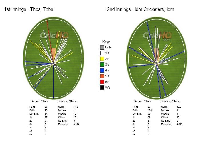 Brief scores: THBS 86 all out in 17.3 overs (Arun 39 (41b, 3X4, 1X6), Vishal 13 not out (21b, 1X4), Nikhil 4/10, Goutham 3/7) lost to IDM Cricketers 87/3 in 18.5 overs (Nitin 22 (29b, 4X4), Kapil 18 not out (19b, 2X4), Madhusudhan 2/16) by 6 wickets